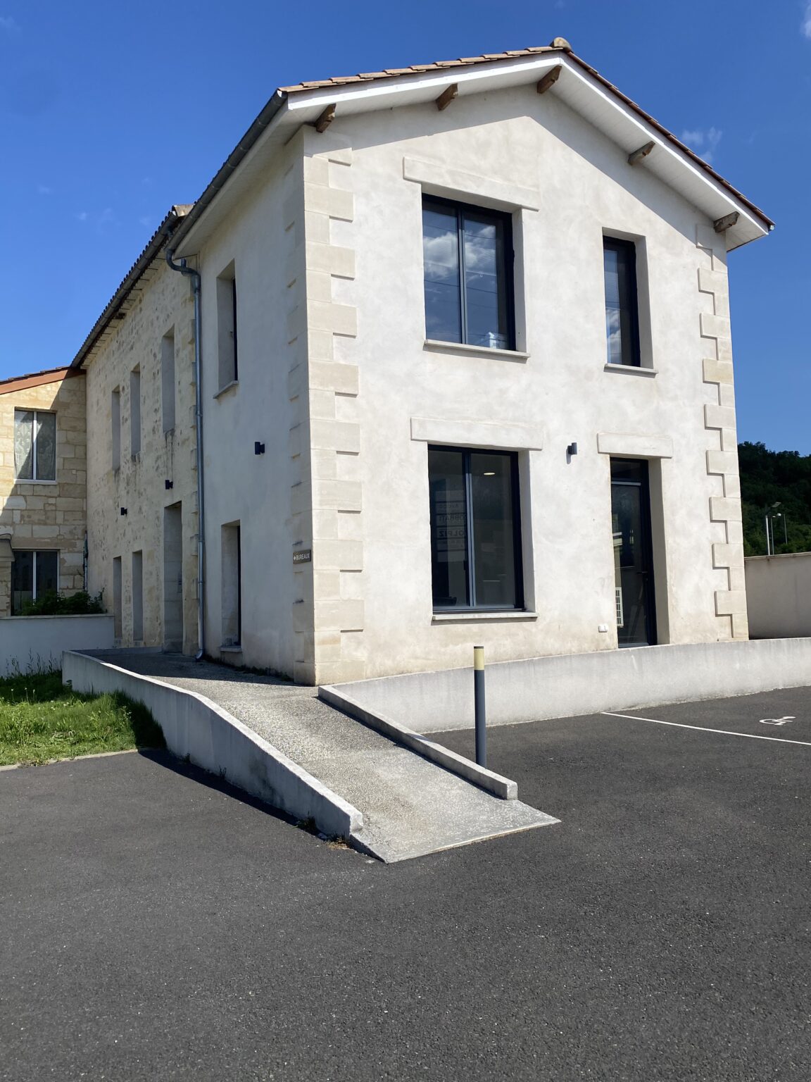 l’accès au bâtiment se fait par le parking, via la rampe d’accès.